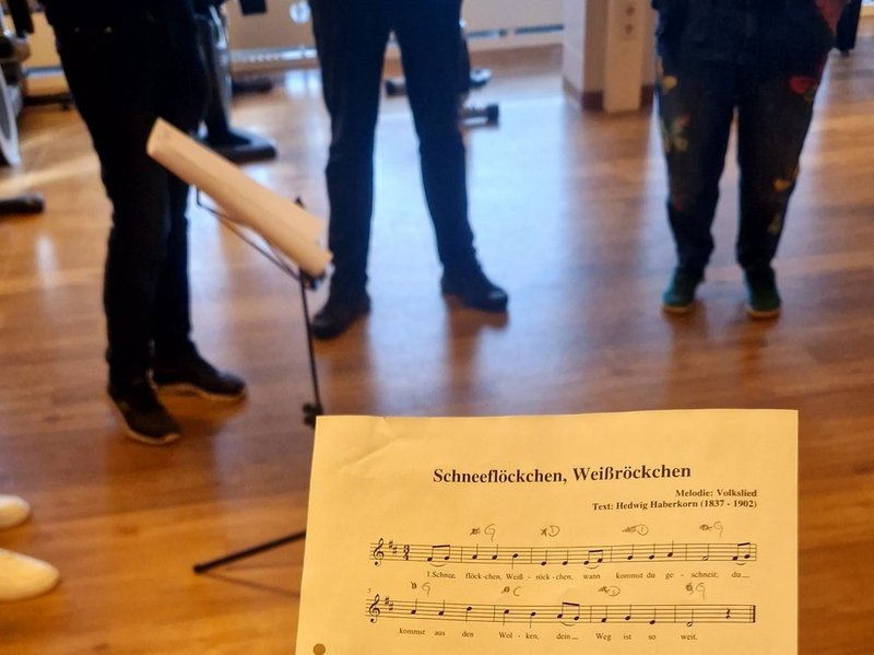 Die erste Session? Ein voller Erfolg! Wir haben gesummt, die Stimme trainiert, Laute von uns gegeben, uns eingegroovt und sogar zwei Songs einstudiert. Die Mischung aus Bewohnerinnen, Bewohnern, Mitarbeitenden und unserem Bewohner Herrn K. am Keyboard war einfach perfekt – Harmonie pur. Kurz gesagt: echtes Rudelsingen-Feeling!