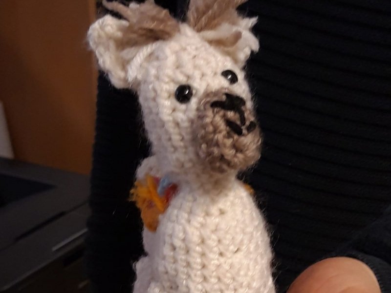 Die Fotos zeigen sein erstes Häkelwerk! Aktuell arbeitet er schon an einer Maus.