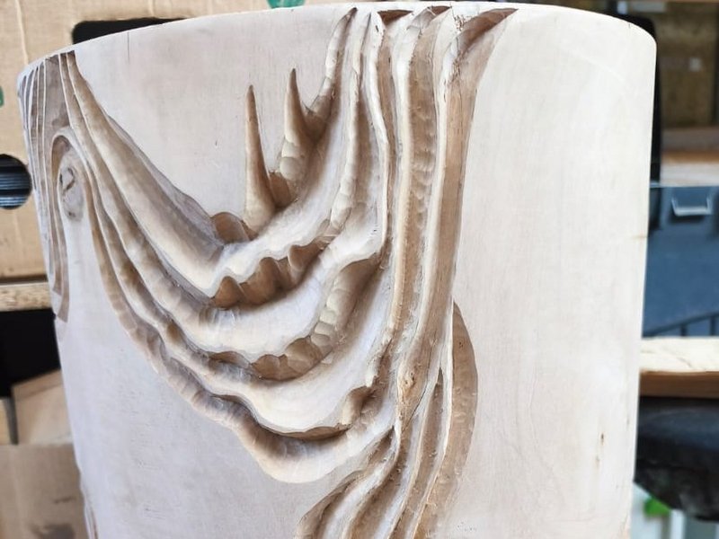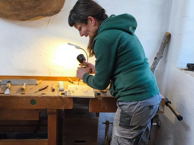 Die Künstlerin bietet auch Holzschnitzkurse an.