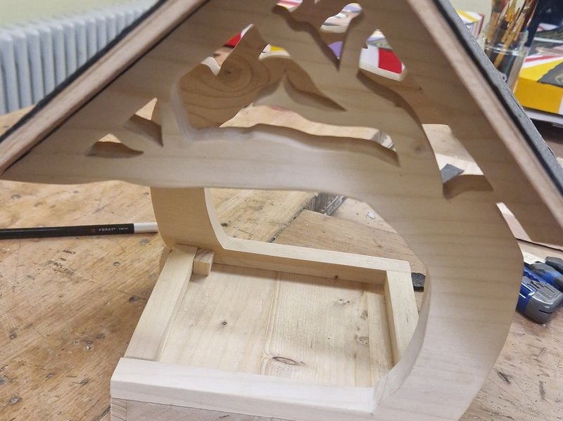 Romina hat eine Lampe in Form eines Wolfes geschreinert und ein sehr individuelles Vogelhaus fertig gestellt.
