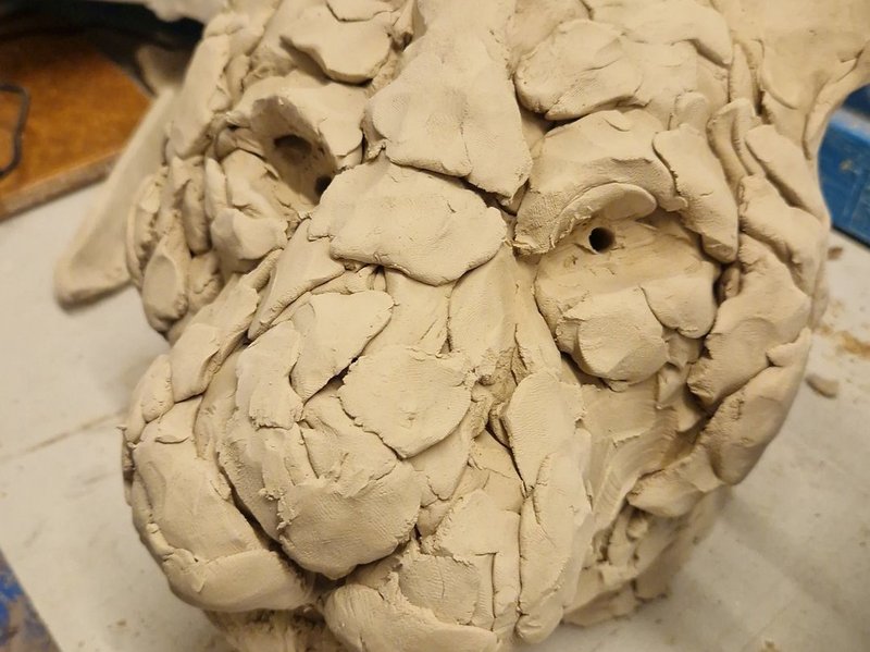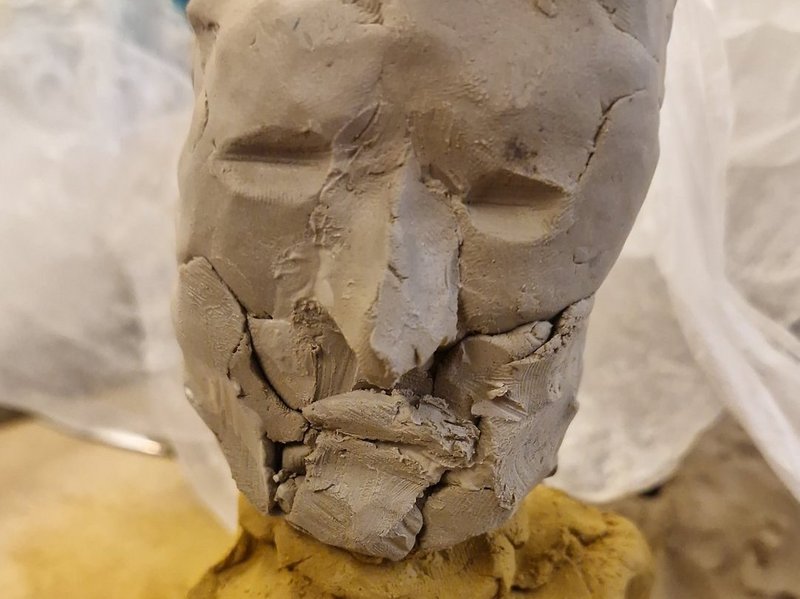 Ein Foto zeigt eine Plastik in der Entstehung. Sie ist noch nicht fertig. Der Prozess läuft.