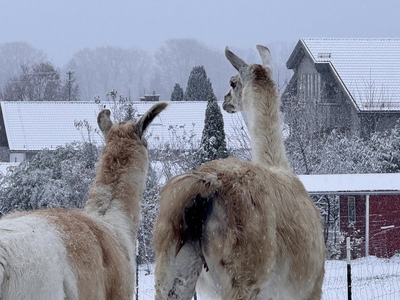 Wir haben uns riesig gefreut, als uns unsere Bewohnerin Romina uns diese wunderbaren tierischen Schnappschüsse geschickt hat. Romina, gelernte Pferdewirtin und engagiertes Mitglied des Bewohnendenrates, hat genau den richtigen Blick für die besonderen Momente – und diesmal hat sie unsere Lamas und Alpakas vor die Linse bekommen, die den ersten Schnee feiern. Während wir noch überlegen, ob wir Handschuhe oder doch lieber eine warme Tasse Tee brauchen, stapfen unsere wolligen Mitbewohner schon vergnügt durchs Winterwonderland von Bad Feilnbach. Offenbar ist Schnee nicht nur etwas für Wintersportfans – sondern auch für echte Flauschprofis.