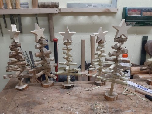 Neue Holzarbeiten von Bewohner Gigi für den Weihnachtsmarkt